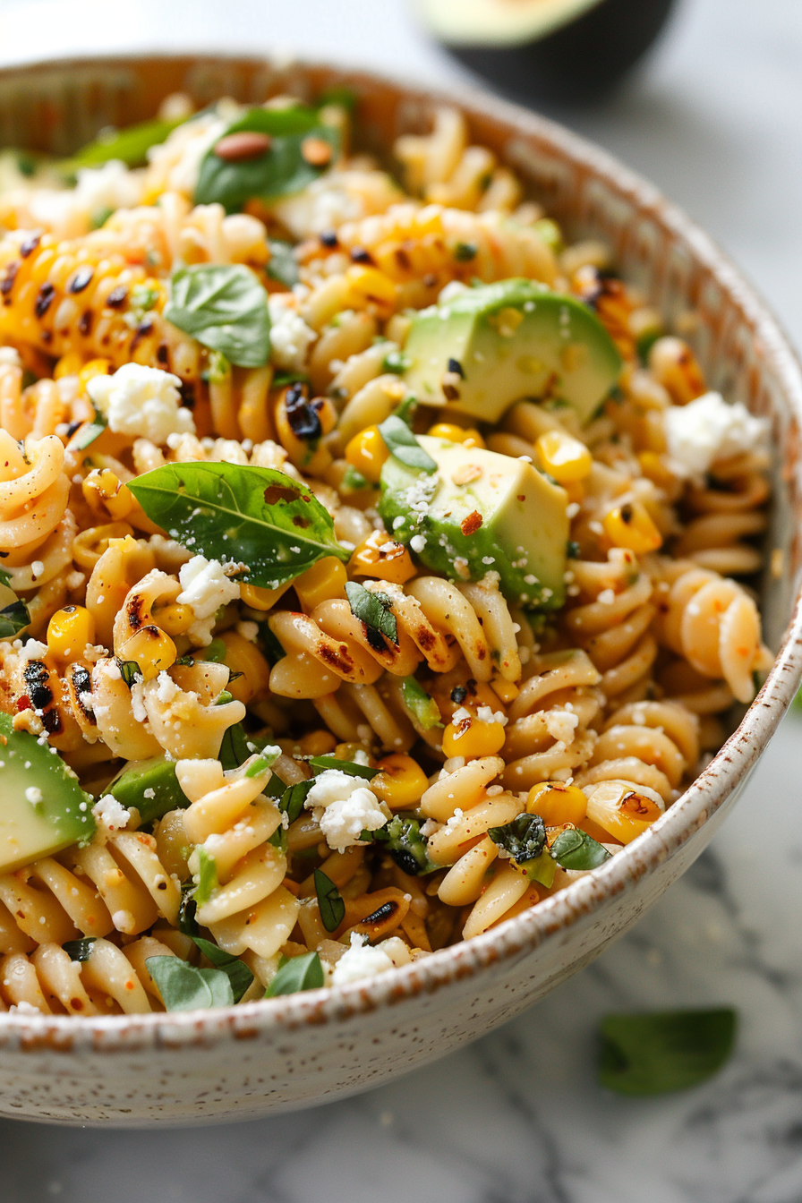 This healthy street corn pasta salad is a creamy, zesty meal perfect for picnics or weeknight dinners. It features charred corn, fresh herbs, and a tangy lime dressing, and is ready in just 30 minutes.